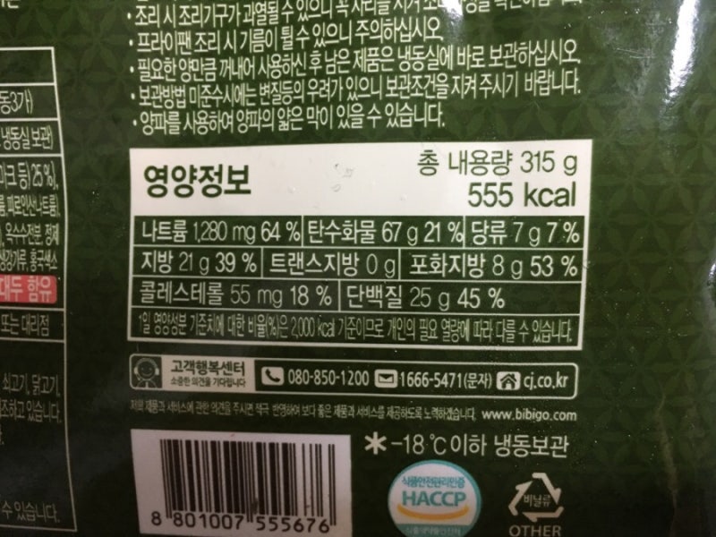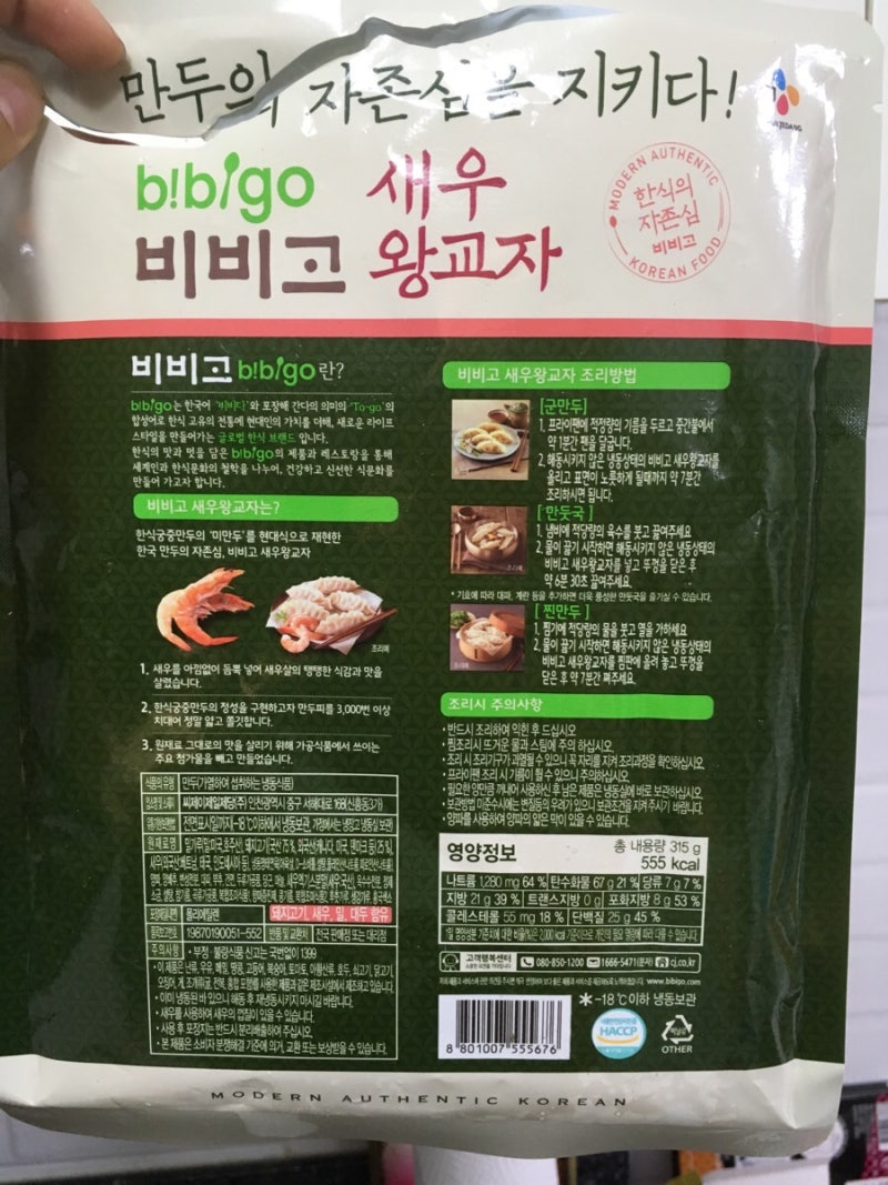 비비고왕교자 새우 칼로리 555kcal 1개 55.5k