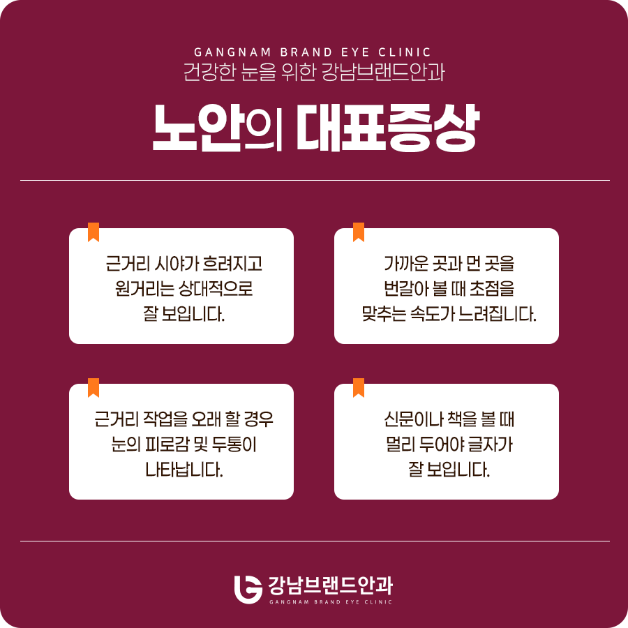 시간의 흐름에 따라 노화가 오는 것은 당연한 일이었습니다. 하지만 시력을 담당하는 눈에 노화가 진행되면 예전처럼 돌아오기 어렵기 때문에 각별한 관리가 필요했습니다. 노화 현상으로 눈이 침침하거나 시야가 흐릿하고 흐릿해 보였다면 이는 노안 증상을 의심해봐야 했습니다. 이를 단순히 노화 증상으로 단정하면 백내장 치료 시기를 놓치게 된다는 점을 알고 있어야 했습니다. 백내장 초기 증상에는 별다른 증상이 없고 노안 증상과 비슷한 증상을 보일 수 있어 혼란스러울 수 있었습니다.