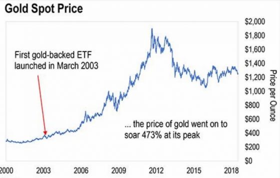 #ETF가 가격을 올리지 않는 지금 ETF가 금값 상승에 결정적인 기여를 했다고는 볼 수 없습니다. 오히려 금리가 내려가고 금을 올린 효과가 더 큽니다.금 ETF는 금 투자를 대중화했다는 의미는 있습니다.채권 이자와 주식 배당등을 종합적으로 생각하면, 금 투자가 주식보다 우수하다고는 말하기 어렵습니다. 이게 바로 기관투자가가 투자 결정을 하는 방식입니다.금 ETF가 등장한 2003년 3월을 기점으로 금값이 올랐다는 단순한 그래프를 보고 ‘비트코인도 5배 혹은 그 이상 오른다’고 생각하면 안 됩니다.
