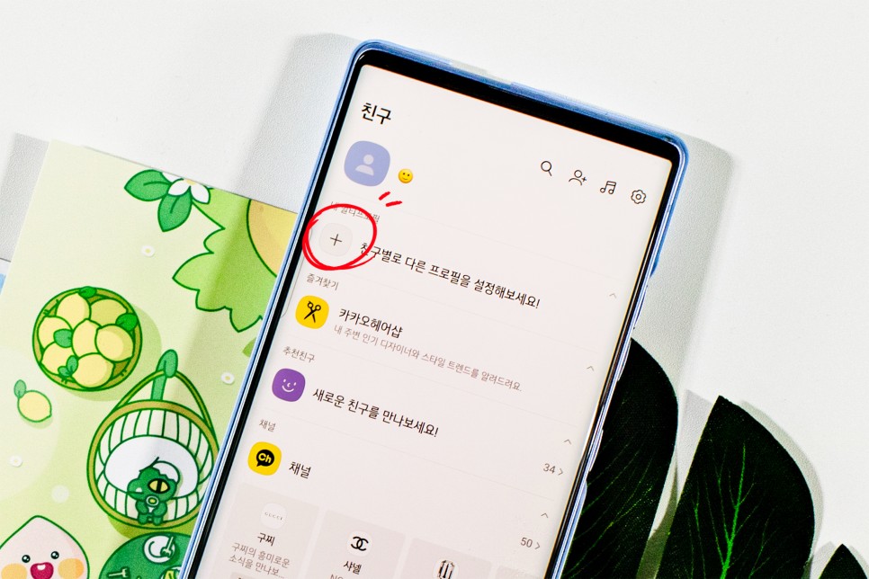 그럼 왼쪽 아래로 사람 모양 버튼을 눌러 친구로 이동해 주세요 그러면 프로필 사진 아래 영역에 ‘친구별로 프로필을 다르게 설정해 보세요.’라는 문장이 적혀 있는 것을 볼 수 있습니다. 여기서 + 버튼을 누르시면 카카오톡 멀티프로필 설정을 진행할 수 있습니다.