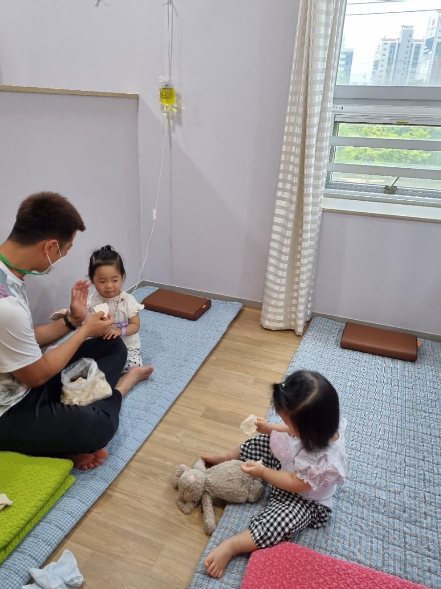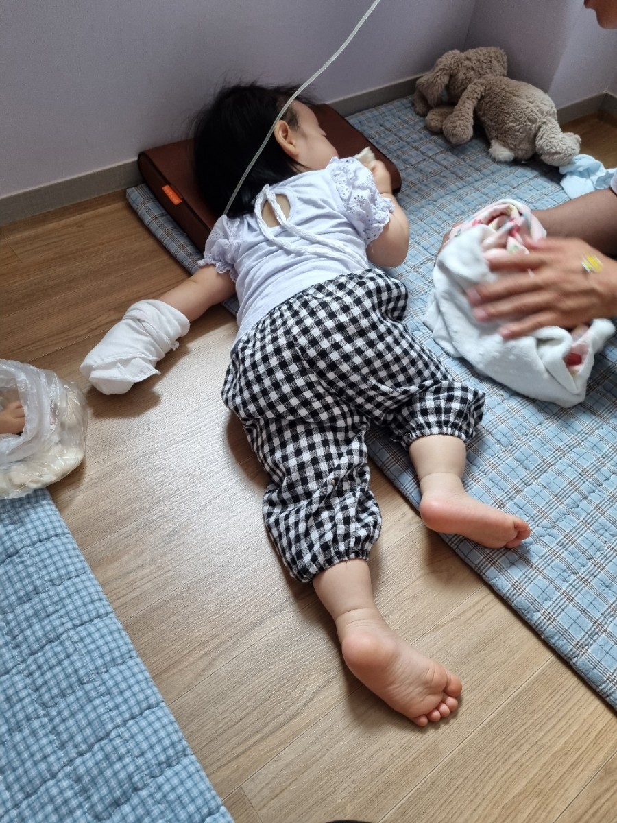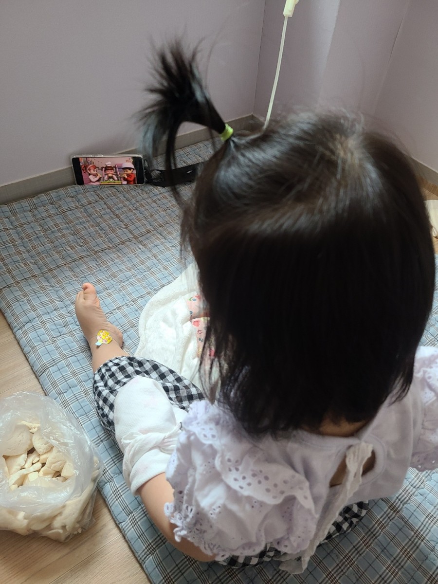 먼저 바늘을 빼놓고 기다리다. 배고파서 지겨워서 집에 가고 싶다는 예리ㅜㅜ엄마도 힘드시겠다…
