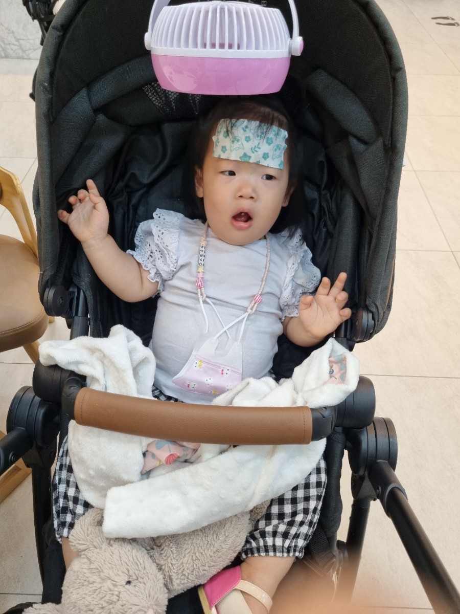병원에 도착해서 체온계니까 39.3 진료전에 해열제를 먼저 먹자고 해서 먹고-비타민을 하나 먹었어!