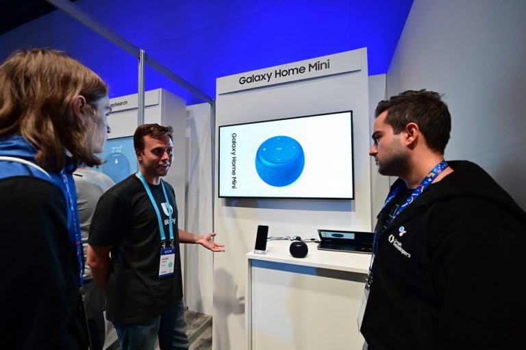 마지막으로 갤럭시 홈 미니도 선보였는데, 이건 일반형 갤럭시 홈 출시도 안 된 상태라 뭐라 할 수 없습니다. 외적으로는 기존 갤럭시 홈에서 발판이 분리되어 작아진 외관을 확인할 수 있습니다