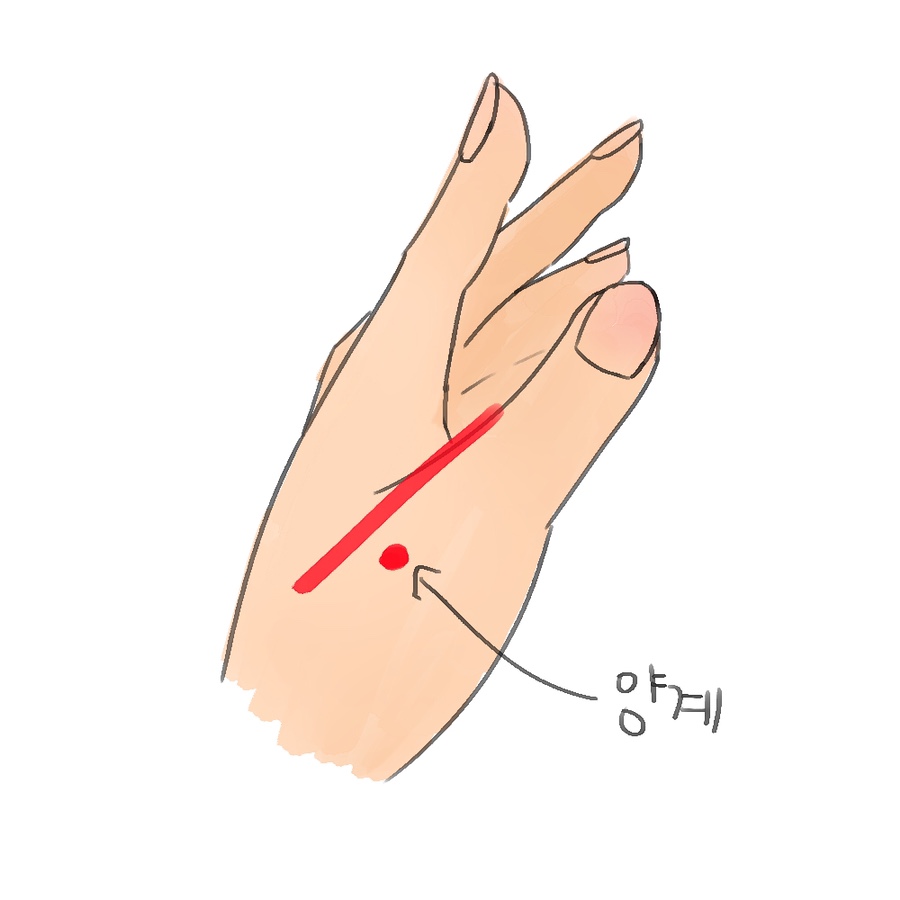 엄지손가락을 세웠을 때 움푹 패이는 계곡 쪽이, 양계의 경혈입니다!