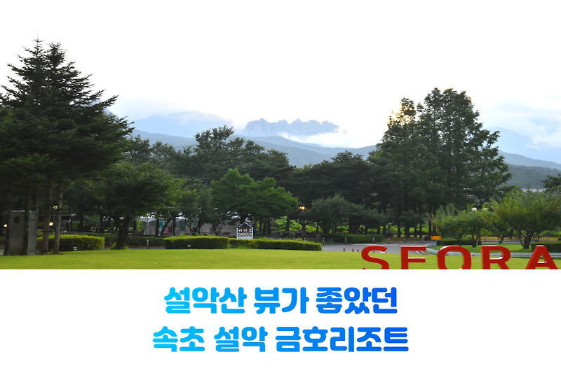 아침에 숙소인 금호설악리조트 방에서 내려다보는 풍경.날씨가 좋아서 설악산이 선명하게 보인다.