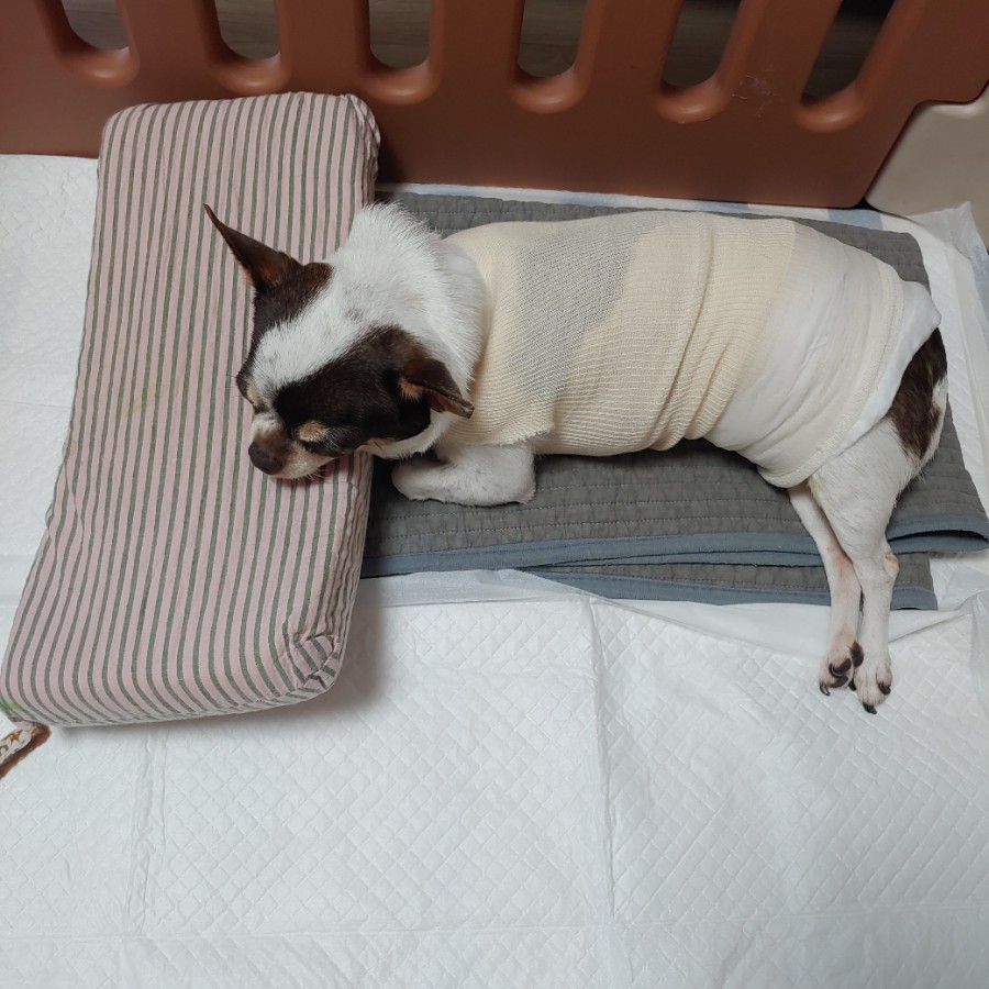 수술하고 마취가 깨자마자 집으로 데려왔어요.이래도 되나 싶었는데 할 수 있다고 하니까 혼자 병원에 두는 것보다는 제가 데리고 가는 게 나을 것 같아서 이틀에 한 번 드레싱을 가서 집에서 제가 케어했어요.