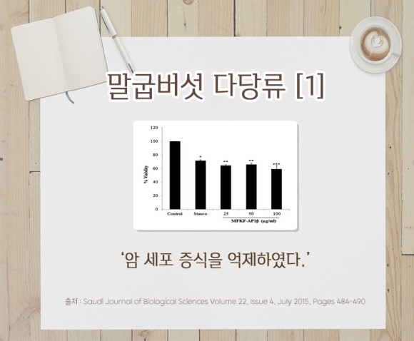 말굽버섯 다당류는 암 조직세포가 우리 몸에서 증식하는 과정을 막을 뿐 아니라 세포 자멸사를 발현해 자살까지 유도했다고 합니다.