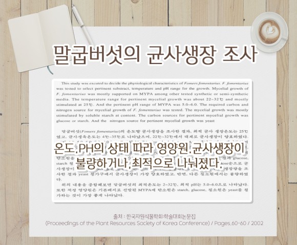 우리나라에서도 학교나 기관 등에서 말굽버섯을 대상으로 한 연구를 많이 발견할 수 있습니다.