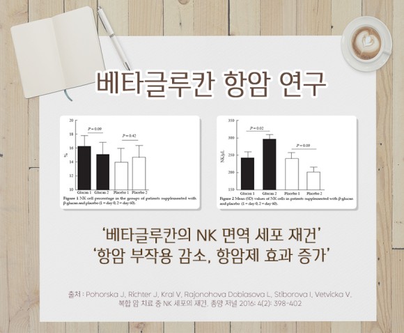 특히 면역세포의 일종으로 암을 치료하는 과정에서 파괴된 NK세포를 다시 복원하는 과정에서 베타글루칸이 영향을 미친 것으로 분석하고 있습니다.