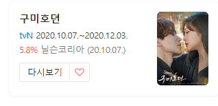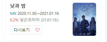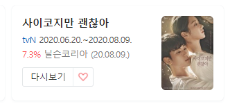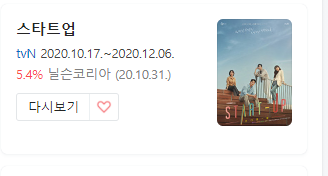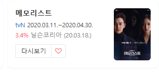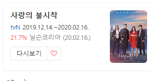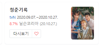 순위 2020년~현재까지의 TO P19 tvn 드라마 시청률