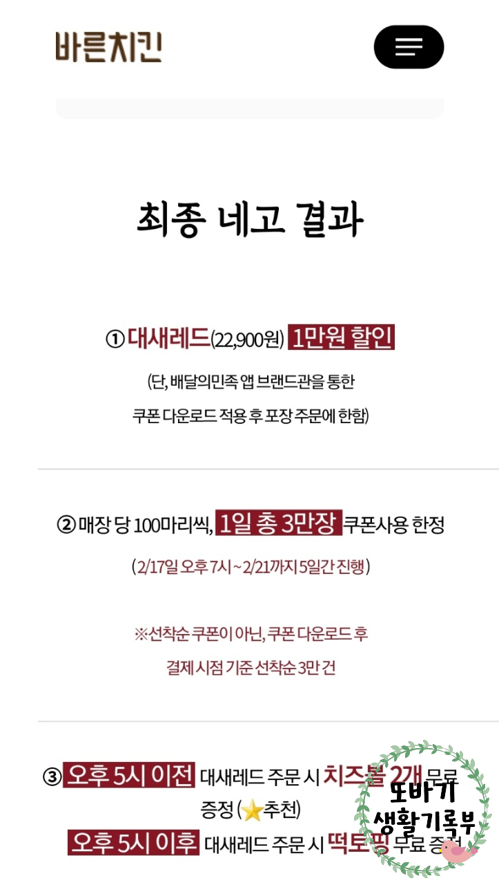 대세치킨이라는 메뉴만 행사를 하는데 발룬치킨의 주 메뉴인 만큼 그 기대가 점점 높아지고 있다.