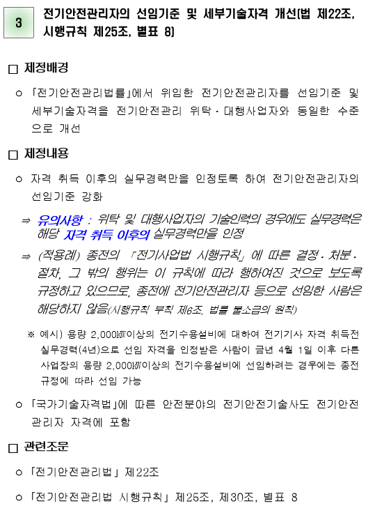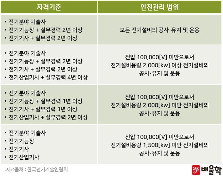 @ 엔지니어는 어디서나 생계를 유지하는 데 큰 어려움이 적다. 요즘처럼 취업이 어려울 때 기술 분야의 한 우물을 파서 해당 국가 자격증을 따두면 평생 식사하는 데 큰 문제가 없다고 생각한다. 기본 자격을 만든 뒤 경력을 쌓고 등급이나 업무 범위가 조금씩 더 넓혀가면 된다. 갈수록 해당 기술 분야의 자격 조건이나 경력 인정 범위가 강화되고 있다. 4년제 대학을 졸업하면 대한민국 어느 분야에서든 기사시험을 볼 자격이 주어졌지만 2013년 해당 분야 학과나 유사 분야 경력자로 응시 자격이 제한되면서 자격증 취득이 갈수록 어려워지고 있다. 일부 분야는 자격증 취득 전 근무경력을 일부 인정했지만 갈수록 강화되면서 자격증 취득 후 경력만 인정하는 추세로 바뀌고 있다. 2021.4.1자로 전기분야 경력 인정도 대폭 강화돼 새로 자격증을 따는 사람은 자격증 취득 후 실무경력만 경력으로 인정받는다. 물론 기존 자격증을 이미 따 자격증 취득 전 경력을 인정받은 것은 불소급 원칙으로 유효하다.예전 같으면 자격증 취득 이전의 경력을 50% 인정했었다. 유예기간 없이 올해 4월부터 시행하게 돼 밤낮없이 자격증 공부를 하는 수험생들에게 실망을 안겨줄 것으로 보인다. 소방시설 분야는 이미 자격증 취득 후 실무 경력만 경력으로 인정하고 있다. 세월호 사고부터 각종 대형사고 발생으로 관련 분야 자격증 취득을 대폭 강화하고 실질적인 근무경력이 자격등급으로 이어지는 추세. 어쨌든 엔지니어 생활을 하려면 관련 분야 자격증을 빨리 취득해 초급, 중급, 고급, 특급으로 단계를 높여 근무하면 된다. 전기안전관리자를 하려면 전기설비(변압기 용량, 발전기 용량 등) 용량별로 필요한 실무 경력이 있어야 하고 자격증 취득 전 경력은 아무런 도움이 되지 않으므로 정신 바짝 차리고 우선적으로 공부에 매진해 자격증을 따야 한다.한 책에서 기술관료주의가 세계를 지배하는 세상이 온다고 했다. 미래에 전 세계를 제패할 나라는 BRICS다라고 말했다. 땅덩어리가 크고 인구 등 각종 잠재력이 큰 나라인 브라질 러시아 인도 중국을 지칭하는 데 주의 깊게 기술력의 발달 추이를 관찰할 필요가 있다. 지금 똑똑한 기술 자격이 하나 있다면 코로나19 난국에도 높은 일자리를 쉽게 극복할 수 있는 무기다.(2021.7.5 충북 청주)