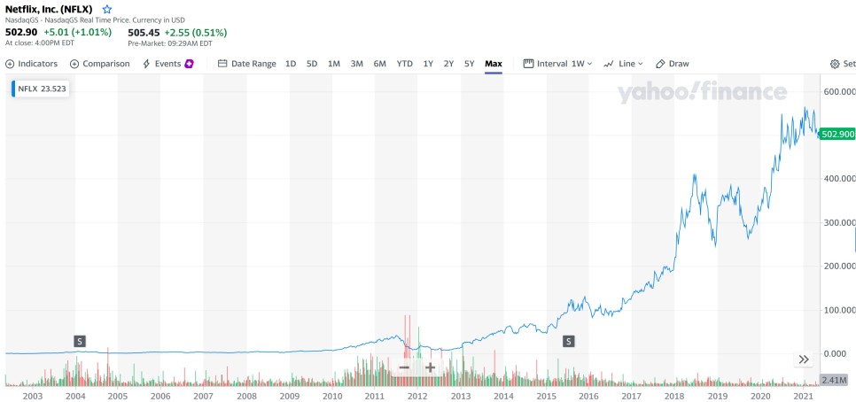 넷플릭스 넷플릭스 주 가격 추이 미국 주식 투자하시는 분들 많이 계시죠?제가 좋아하는 미국 주식 3종은 아마존, 알파벳, 넷플릭스입니다.코인 시장이 무서운 변동성으로 스트레스를 줄 때, 미국 증시의 세 대장 정도는 장기 보유 시 큰 스트레스를 받지 않고 잃게 됩니다.그래서 혹시 마음 편한 투자를 원하시는 분이 있으면 추천할 수 있습니다.