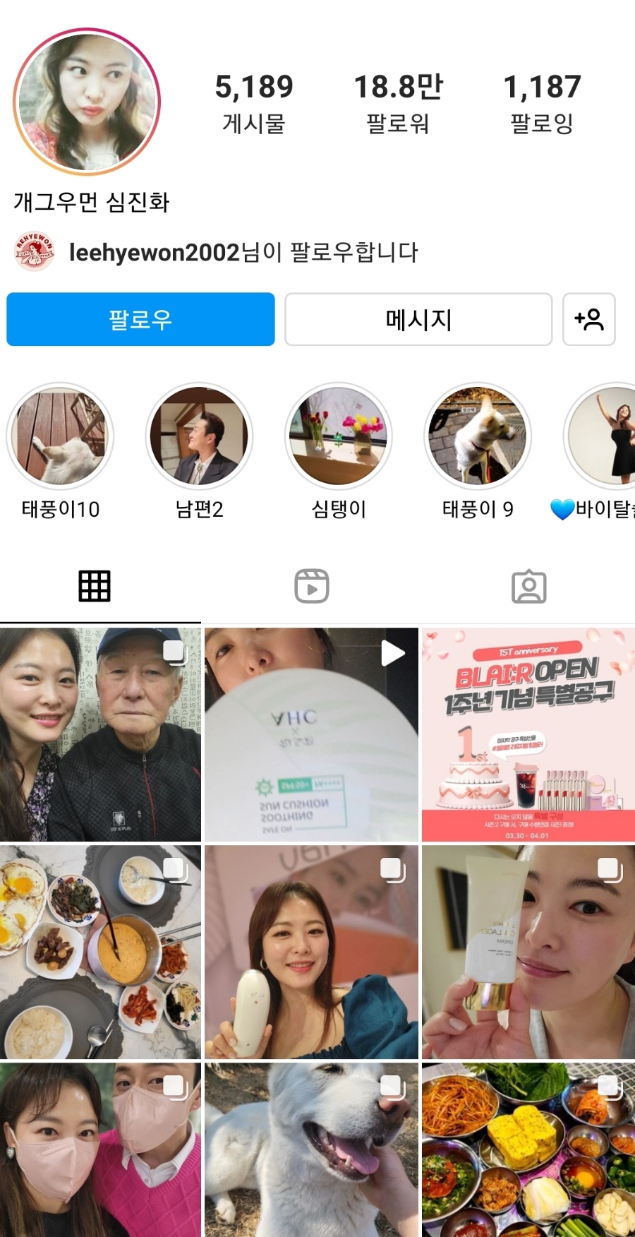 https://instagram.com/shi mjinhwa?utm_medium=copy_link 팔로워 18.8만명, 팔로잉 1187명, 게시물 5189개-코미디언 심진화(@shimjinhwa)님의 Instagram 사진 및 동영상 보기 instagram.com