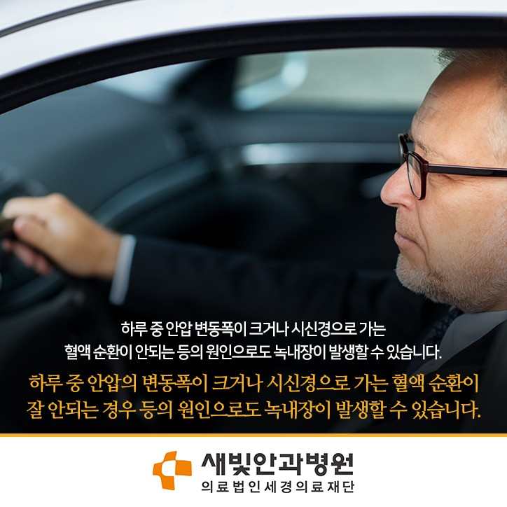 안압이 높아 발생할 수 있지만, 안압이 정상이더라도 안압 하루 중 변동폭이 크거나 시신경으로 혈액순환이 잘 되지 않는 경우 등의 원인으로도 녹내장이 발생할 수 있습니다.