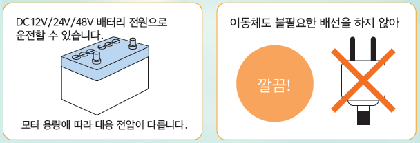 브라더 GTRV/SD-시리즈인 배터리 전원 타입 DC모터는 DC12/24/48V 전압의 배터리 전원으로 운전할 수 있으며 배터리 전원 구동으로 배선에 의한 케이블 간선이 없기 때문에 특히 AGV와 같은 이동체에 적합한 모터입니다. 배터리 제품으로 정전이나 전원이 차단된 상태에서도 구동이 가능합니다.