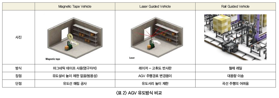스마트팩토리 물류 이송 AGV는 작업의 효율을 높이고 산업재해를 줄이는 데 높은 안정성을 보이는데 핵심적인 역할을 하고 있습니다.AGV Guide 방식은 마그네틱 가이드 방식, QR-Code 가이드 박식, 레이저 가이드 박식, 자율주행 가이드 방식 등이 있으며 최근에는 마그네틱 가이드나 레이저 가이드 방식을 넘어 자동차처럼 주변 환경을 인식하고 주행하는 자율주행 방식으로 변화하고 있는 상황입니다.