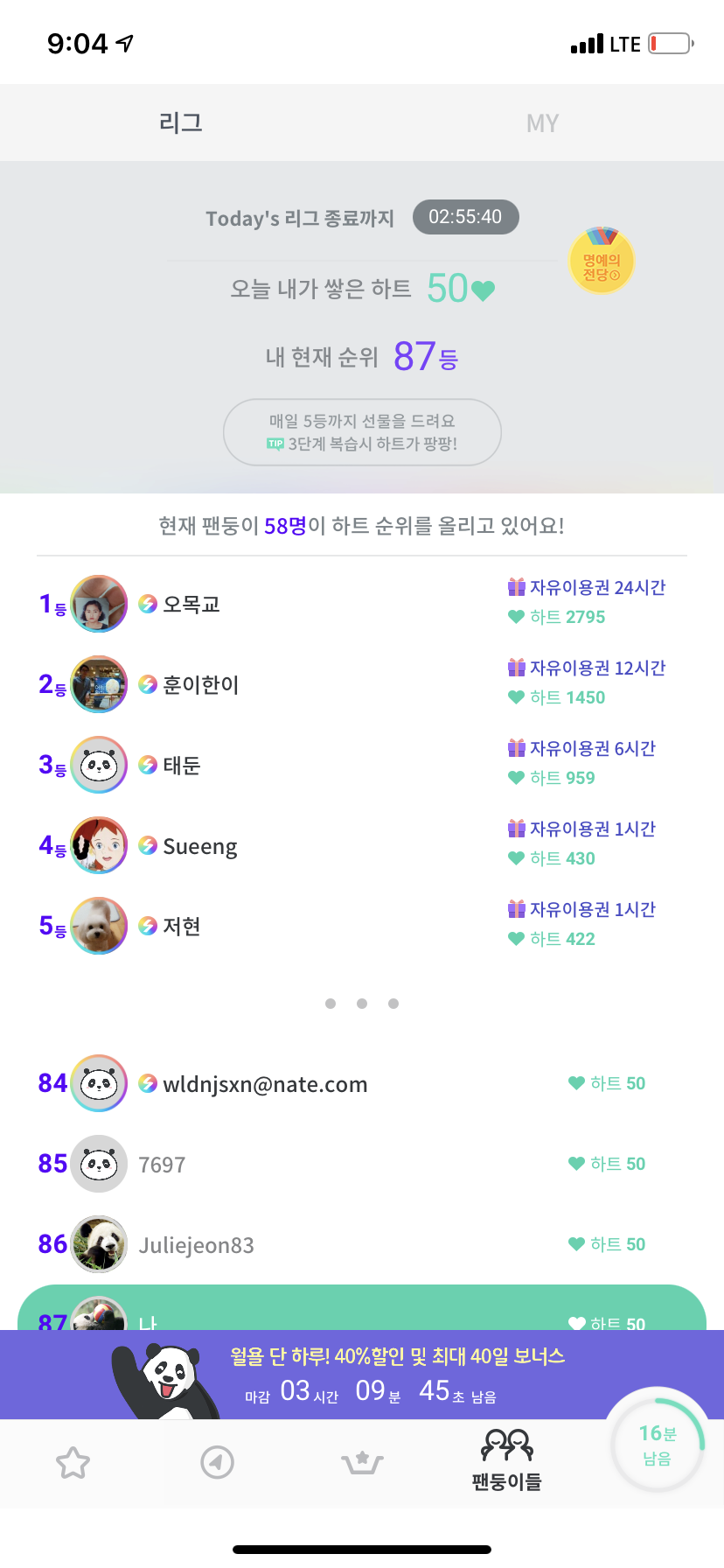 이 하트수로 겨루는 리그도 있습니다!! 승부욕을 일으켰습니다.