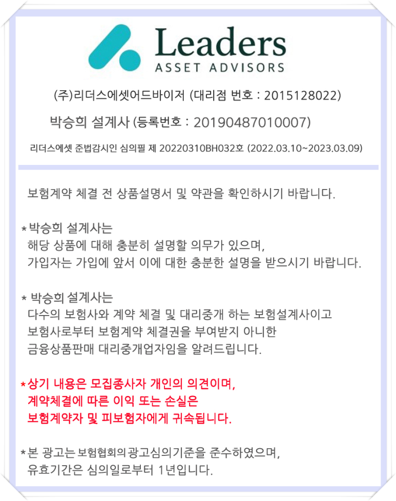 고지 의무가 쉽게 바뀌기 때문에 일반보다 가입하기 쉬울 것으로 생각됩니다.335 고지 의무가 최근 나와서 유익한 구조로 되어 있으므로 아래의 체크를 부탁드립니다.* 상기 내용은 보험회사, 상품유형, 납기, 만기 외 피보험자의 성별, 직업, 연령특약 구성 등에 따라 달라질 수 있습니다.