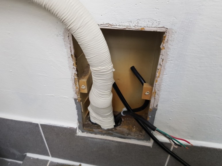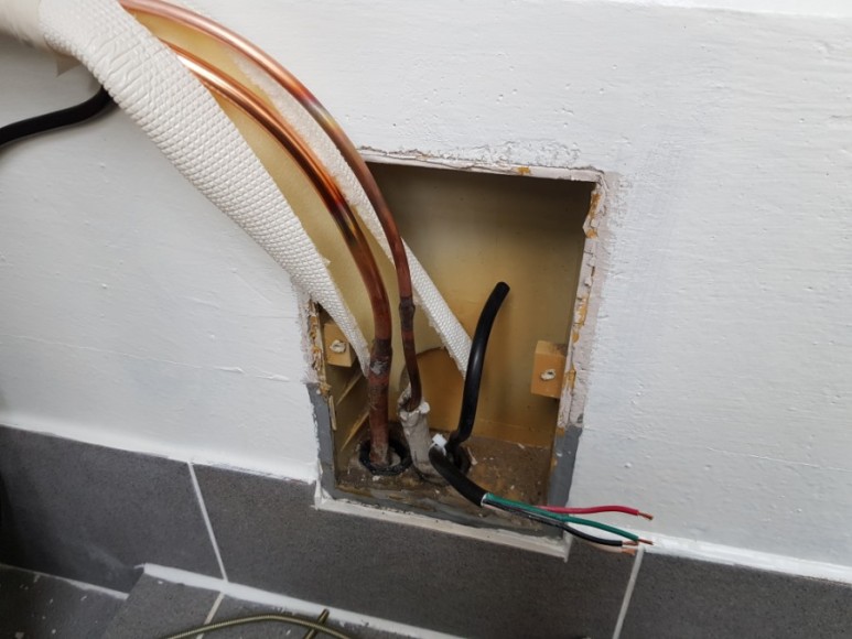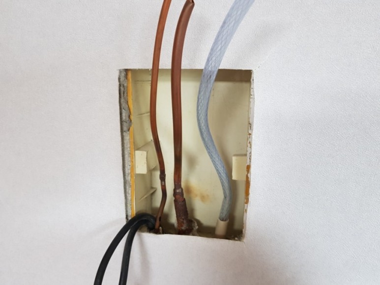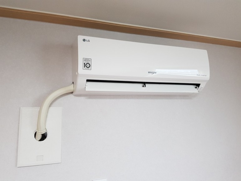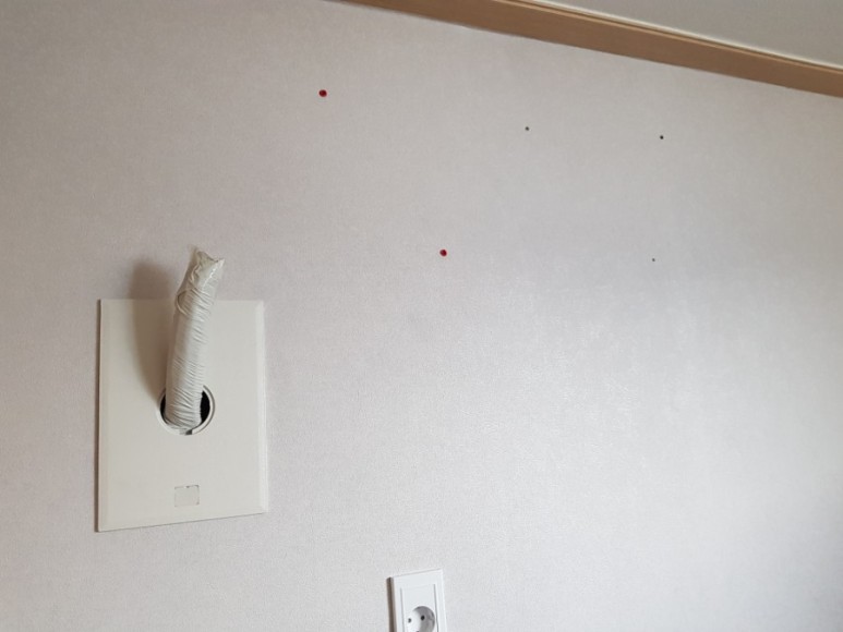 재송동 센텀파크는 매립배관 아파트를 말합니다.집을 지을 때 배관을 벽 속에 매립해도 건축 연수가 얼마 되지 않아 매립 배관이 망가진 곳이 많습니다.그래서 벽을 메우고 설치를 합니다.손님 댁도 마찬가지였습니다.스탠드형이 설치되는 거실은 구멍투성이고 벽걸이만 매립배관이 살아있었습니다.
