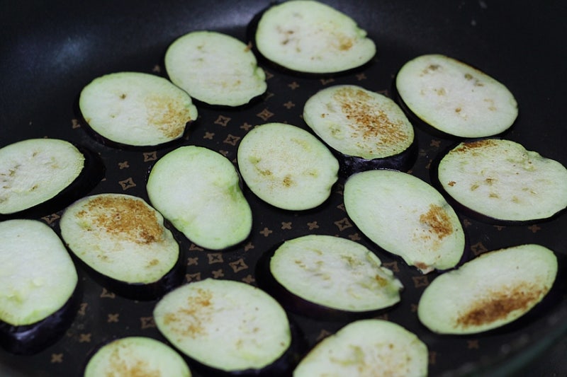 가지의 내용물은 매우 연약해서 다른 채소처럼 사전에 양념을 해 버리면 곤약이 되어 버립니다.그러나 간을 하지 않는 경우에는 그 형태가 유지됩니다.가지볶음 할 때도 마찬가지니 참고해주세요.^^ 둘째, 드레싱 오일은 최소화한다.
