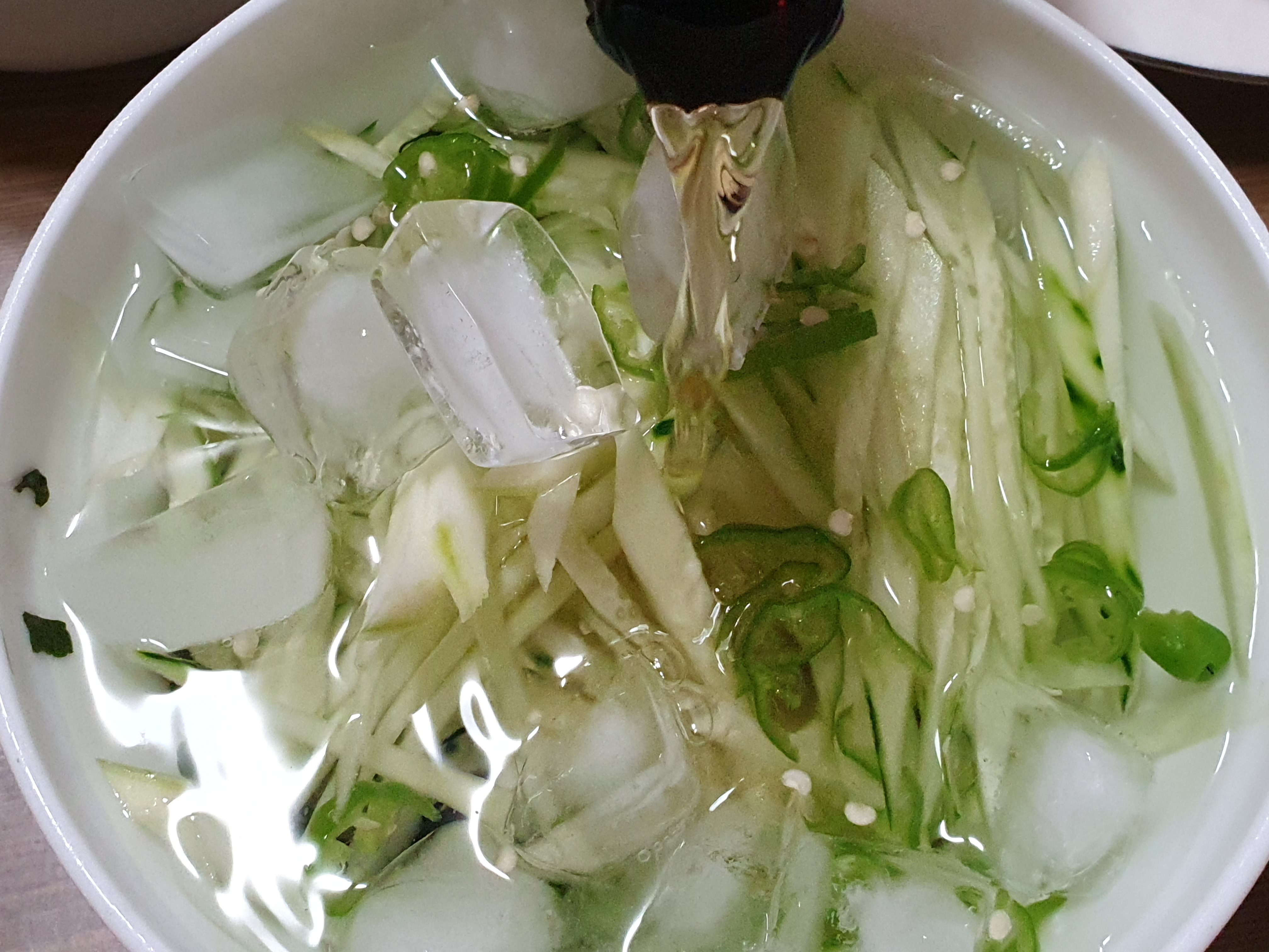 오이효능 오이의 제철 오이칼로리 맛있는 오이냉국 만들기 <오이냉국 만드는 법> 1. 육수를 얼려 아이스메이커에 부어 얼려둔다.