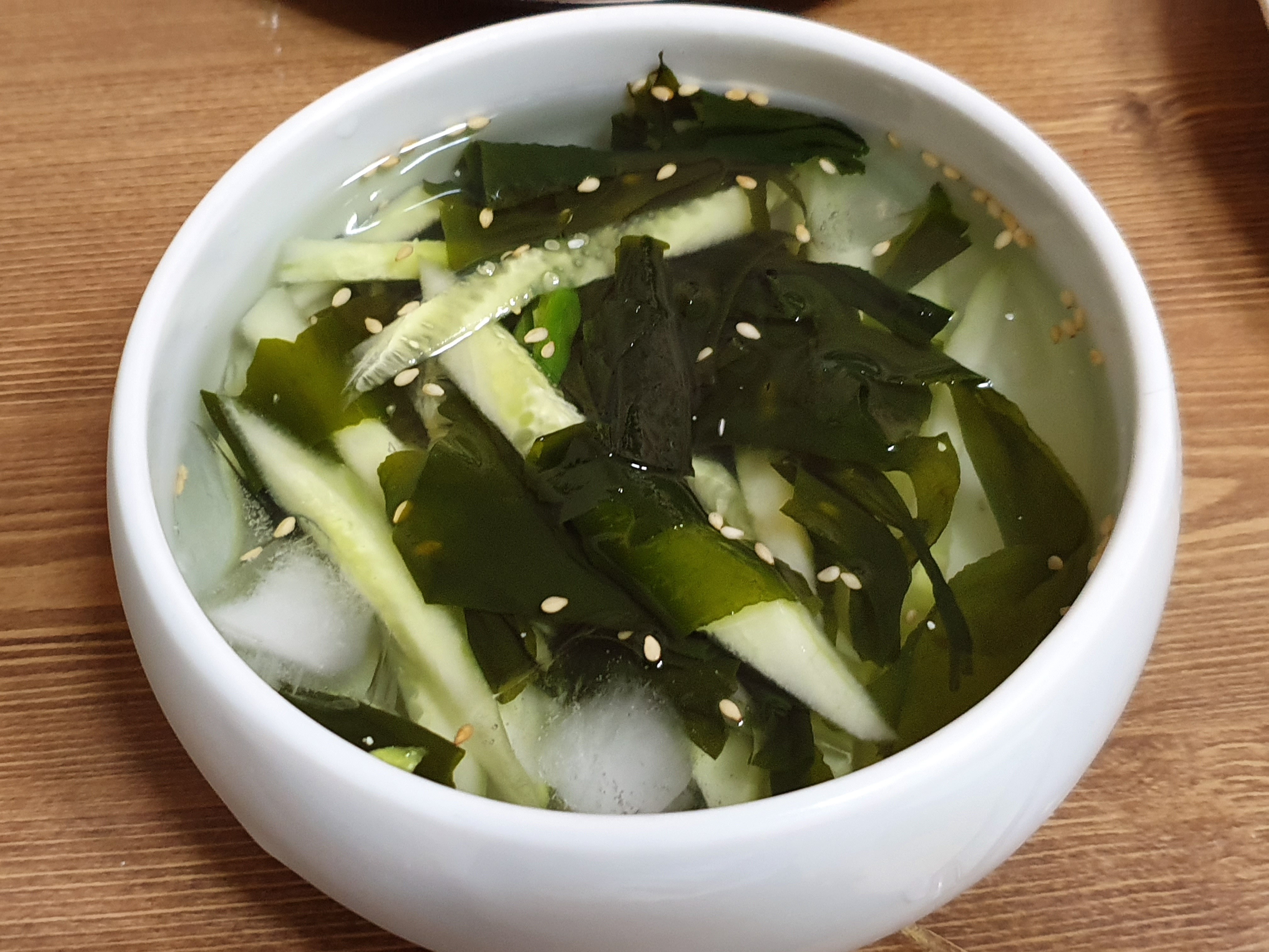 오이효능 오이열량 맛있는 오이냉국 만들기 <오이냉국 만드는 법> 2인분 재료: 오이 1/2개(100g) 다시마스프 1컵반(300ml) 청양고추 1개 매실청 1큰술 고춧가루 1작은술 소금 1작은술 깨소금 약간