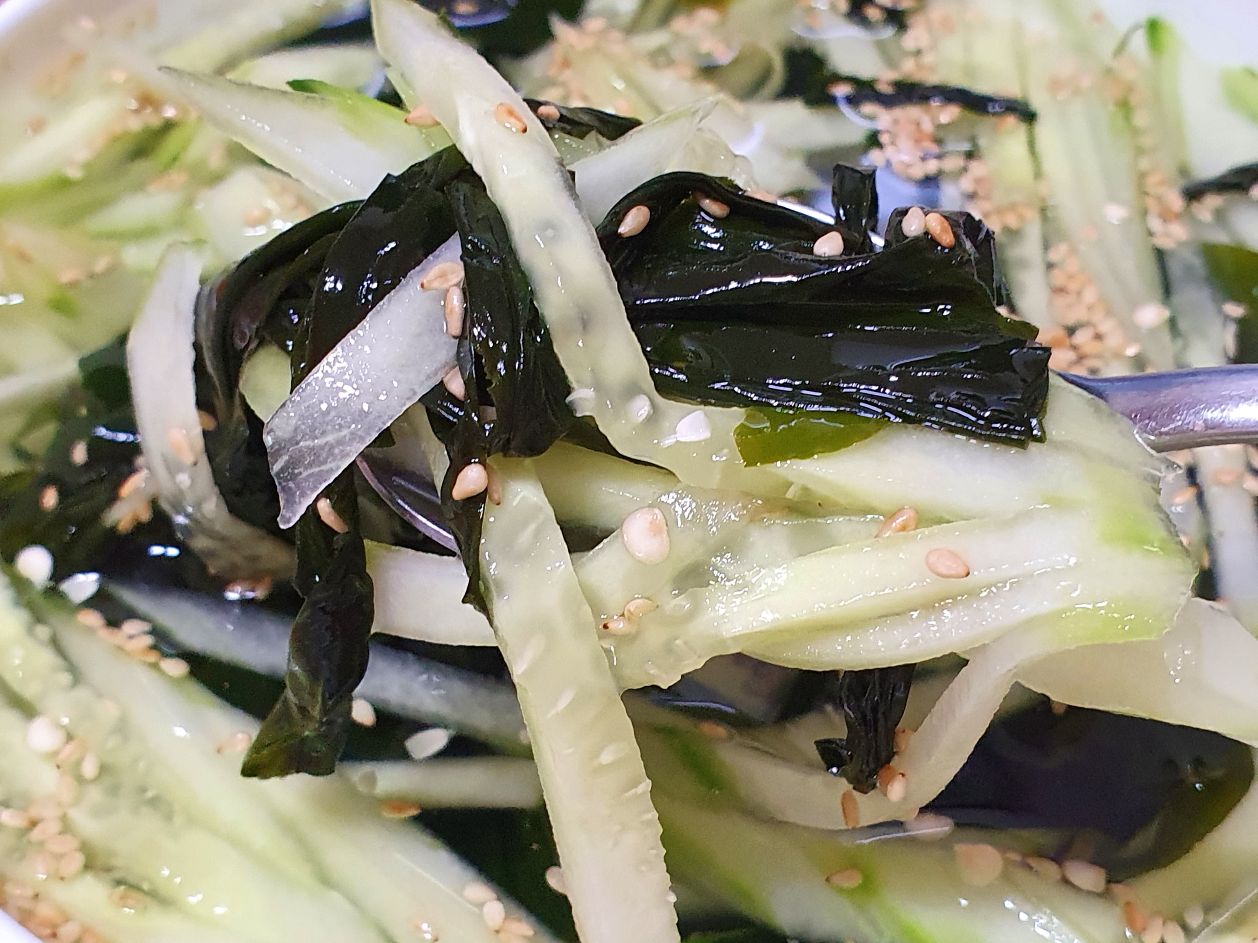 오이효능 오이열량 맛있는 오이냉국 만들기 <오이냉국 만드는 법> 2인분 재료: 오이 1/2개(100g) 다시마스프 1컵반(300ml) 청양고추 1개 매실청 1큰술 고춧가루 1작은술 소금 1작은술 깨소금 약간