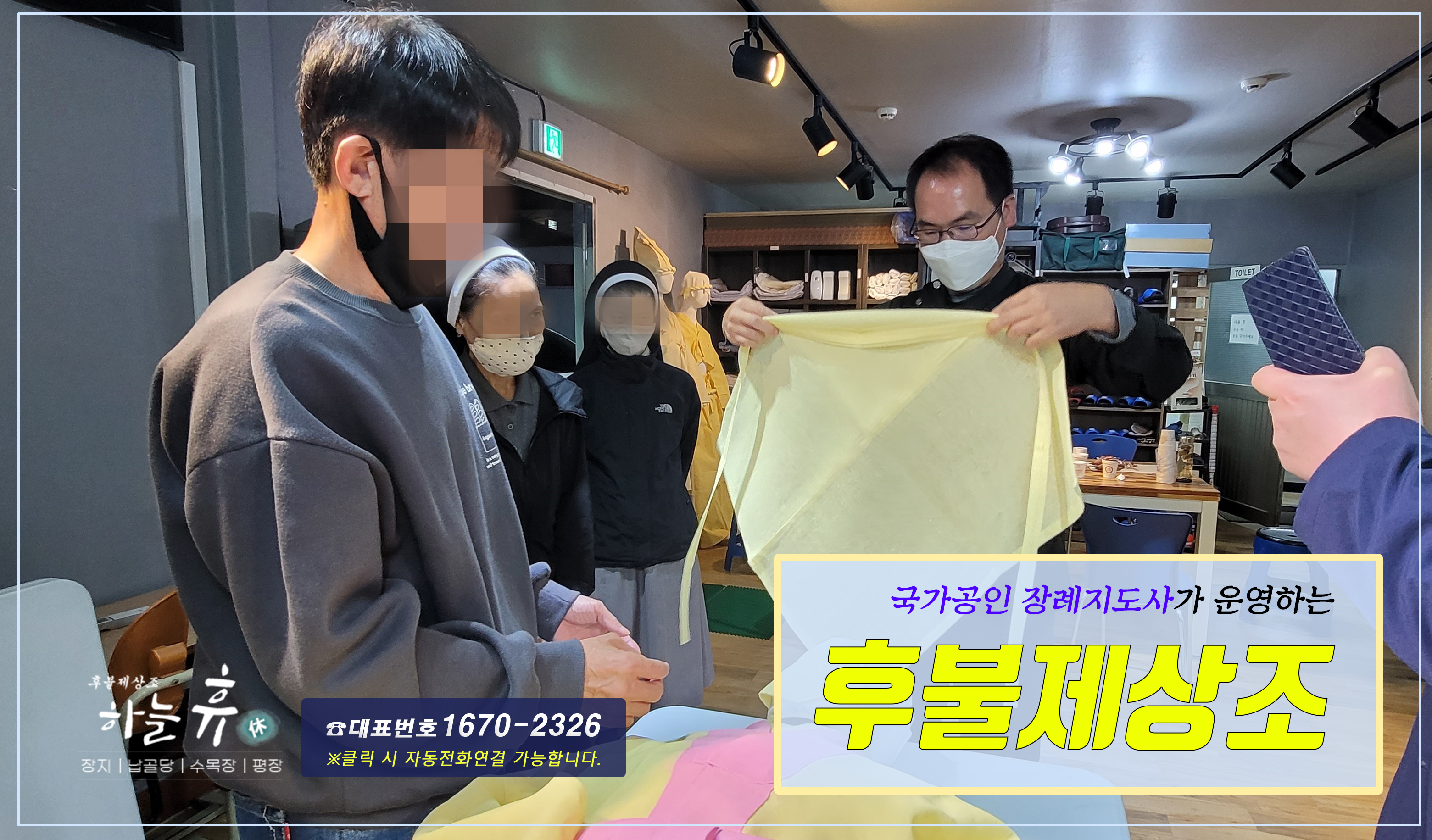 상담 시 항상 상세하고 꼼꼼하게 도와드리며 하나부터 열까지 모든 부분을 성실히 도와드리겠습니다.저희 하늘휴 홈페이지에서도 금액을 확인할 수 있도록 투명하게 운영하고 있는 안심상조업체입니다.추가 요금이 발생하는 일은 절대 없습니다! 오히려 하늘휴에서는 유족분들이 굳이 진행하지 않아도 되는 서비스를 이용하고자 하는 경우 솔직히 말씀드리고 있으니 더 많은 분들이 믿고 저희 서비스를 이용해 주실 것입니다.우리의 이익보다는 고객의 입장에 서서 마음을 헤아려 드리겠습니다.최대한 잘 섬기는 거 그거 하나뿐이에요. 아름답고 향기로운 꽃 염색 서비스