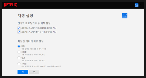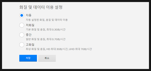 아래 화면으로 변경됩니다.여기서 넷플릭스 화질 설정이 가능합니다.