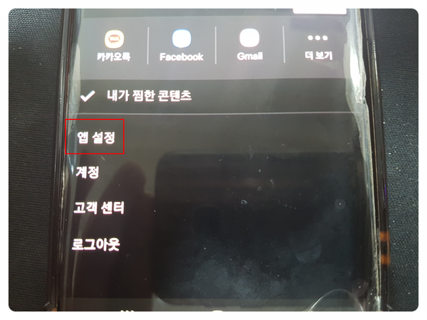 하단 메뉴 중에 앱 설정을 클릭합니다.