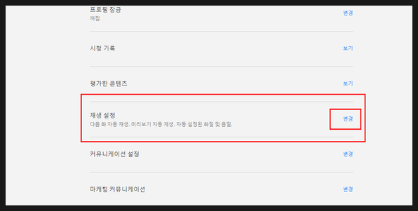 자, 재생 설정 옆의 변경 버튼을 누릅니다.