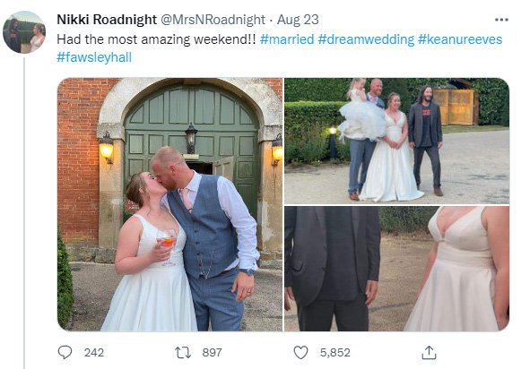 니키 씨는 결혼식은 이미 완벽하고 마법 같았지만 리브스의 등장으로 ‘비현실적으로 아주 멋진 행사’가 됐다며 감격스러워했습니다. 할리우드를 대표하면 세계적인 배우의 축복을 받은 아주 꿈같은 특별한 결혼식을 했으니 행복하게 살아야겠네요.^^ 그렇다 치더라도 주인공이 되어야 할 신랑 신부가 갑자기 단역 엑스트라가 되어버린 결혼식이 아니었나 싶은데, 본인들이 너무 멋진 행사가 돼서 감격스러운 날이었다니 다행입니다.