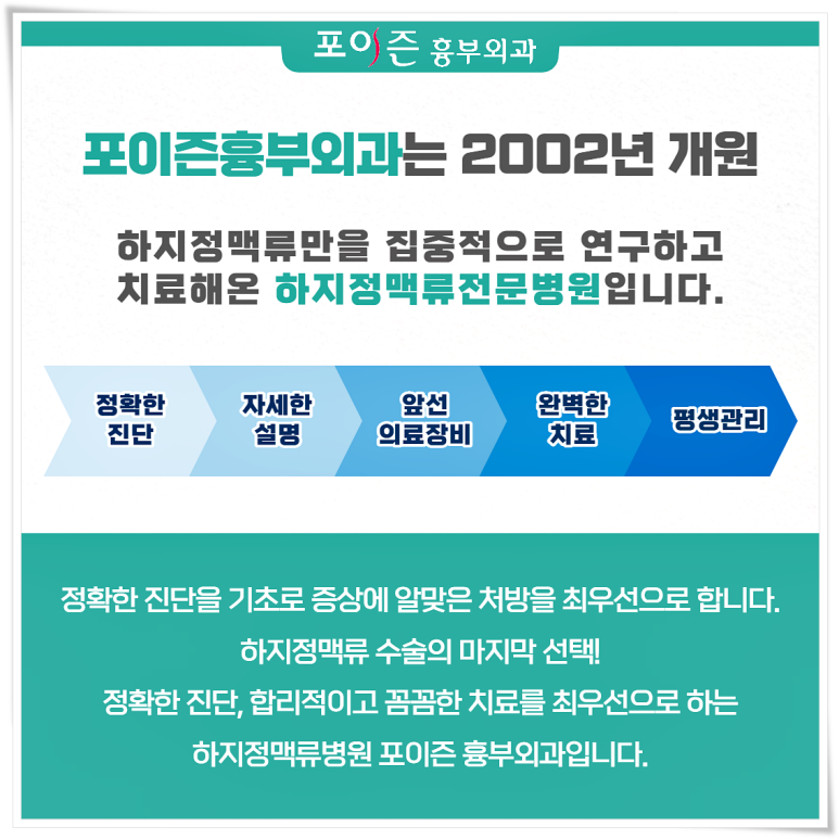 또한 일반적인 병태인 하지정맥류라도 합병증 동반 여부도 반드시 확인해야 할 부분입니다.