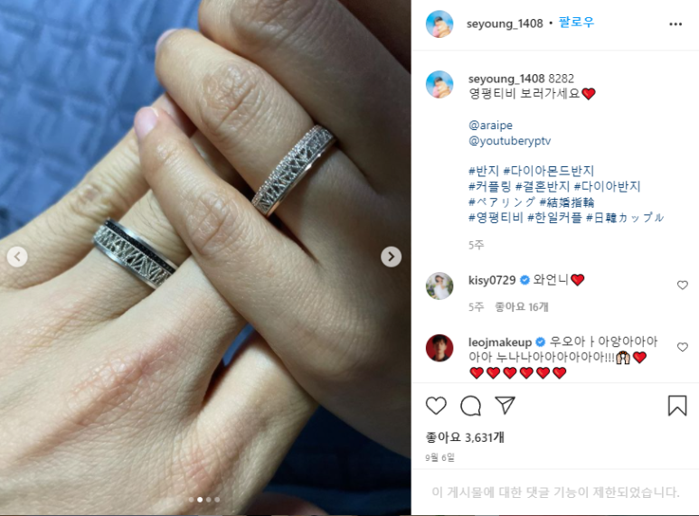 유튜브 채널을 보면 남자친구 영상의 경우 전혀 삭제된 부분도 없고, 이세영의 인스타그램을 확인해 보니 남자친구 사진도 여전히 그대로였습니다.
