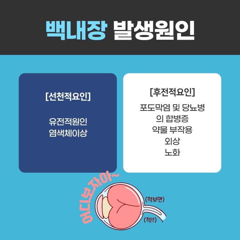 특히 이러한 원인 외에도 당뇨병이나 외상, 스테로이드 제제 안약 등을 장기간 사용한 경우 발생할 수 있습니다.