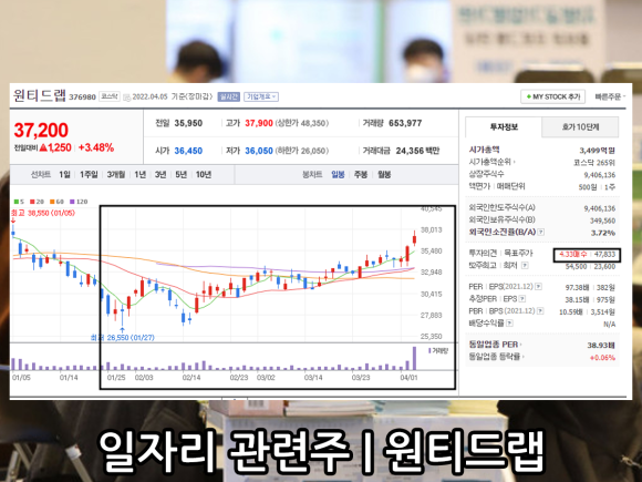 지난해 신규 상장을 한 원티드랩은 비교적 주가 등락폭이 제한적이었음을 확인할 수 있다.