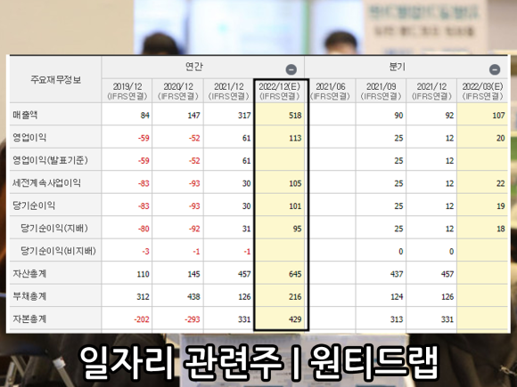 적자 추세를 보인 원티드랩은 신규 상장을 한 지난해 실적 반등을 보인 모습을 볼 수 있다.