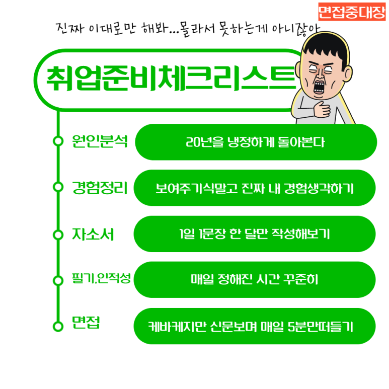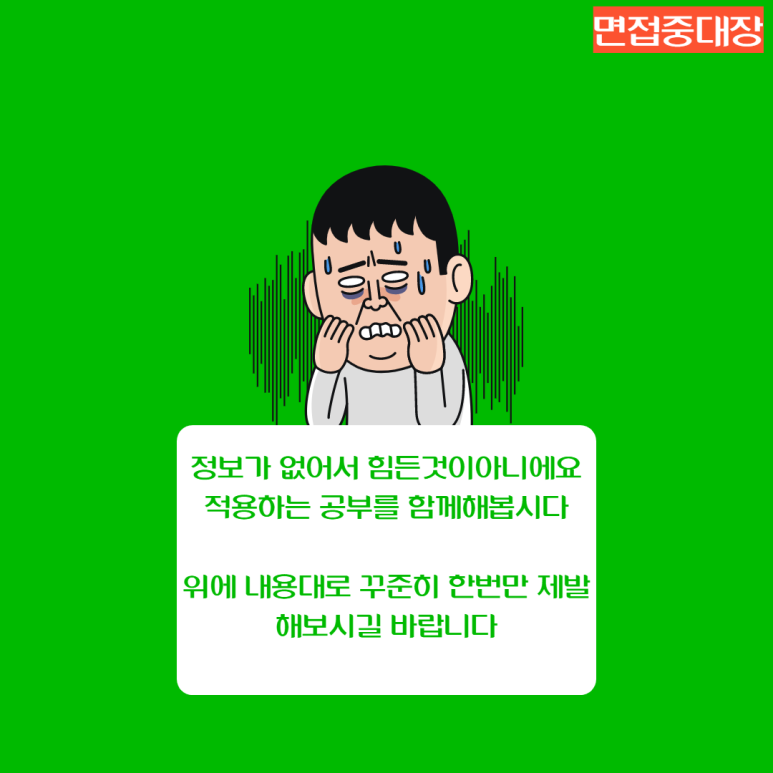 아마 이 글을 읽고 있는 취업준비생 중 올해 하반기 정말 필기공부나 인적성공을 열심히 해서 자격증 공부에 올인했지만 면접에서 제대로 답하지 못하고 불합격 통보를 받았다.또는 공부만 하고 그 다음 결과가 나오지 않은 취업준비생이 반드시 있을 것입니다.