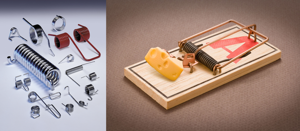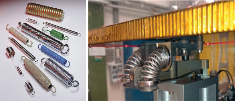 스프링힌지시스템에 쓰이는 토션스프링(왼쪽)은 다단계에도 쓰인다. <사진출처=generalwirespring.com/depositphotos>
