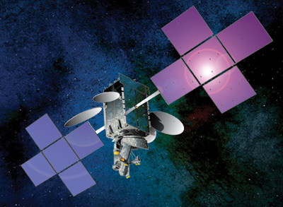 임무 테스트 중 남쪽 방향의 태양전지판이 손상됐다는 신호를 받은 인텔샛19의 상상도. <이미지 출처=SSL>