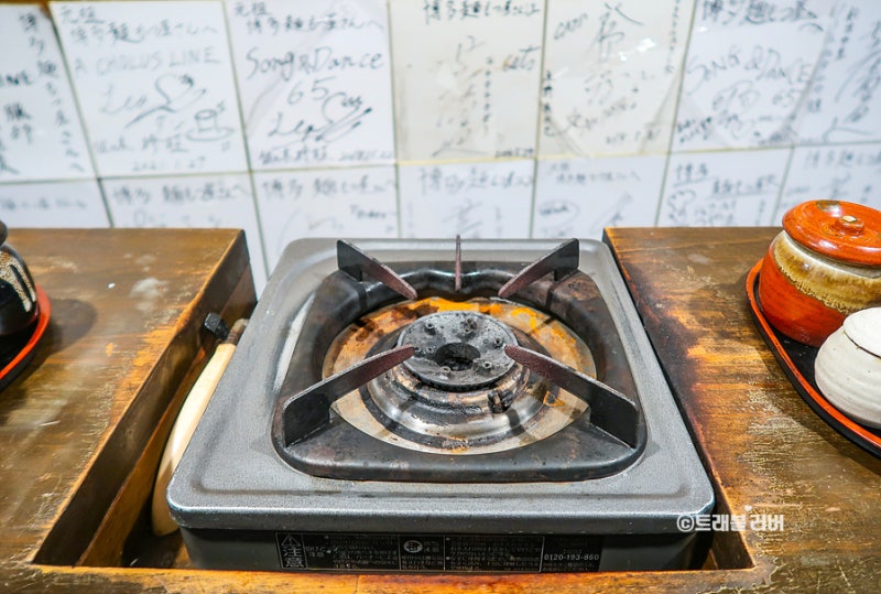안으로 들어가면 일직선으로 이어지는 바 테이블이 보이는데, 총 10여 명밖에 앉을 수 없는 작은 밥집이라 여럿이서 가기에는 좀 불편할 수도 있습니다. 저는 혼자 후쿠오카 여행을 하다 보니 혼밥하기 좋은 식당이라고 생각했고, 실제로 혼자 있는 냄비를 찾아온 혼밥족이 대다수여서 편하게 식사를 할 수 있는 분위기였습니다.