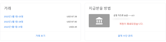 구글 애드센스 통장 지급방법 입력계정이 폐쇄되었습니다. 해결 방법
