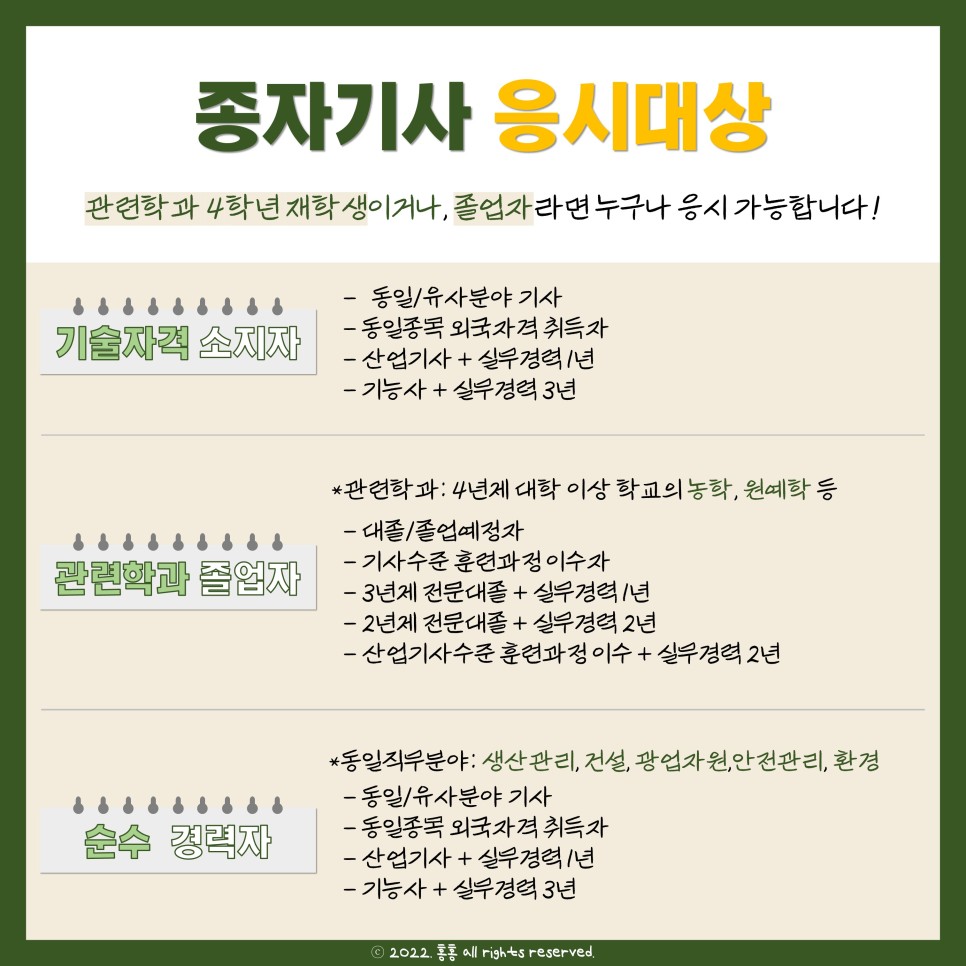 종자 기사의 수험 대상은 제한되어 있습니다!관련 학과 4학년 재학생과 휴학생, 그리고 졸업생이라면 누구나 응시할 수 있습니다.
