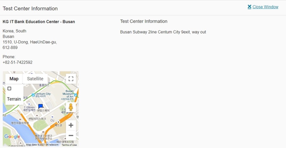 KG IT Bank Education Center – Busan Korea, South Busan 1510, U-Dong, Hae UnDae-gu, 612-889 Phone : +82-51-7422592 Test Center Information Busan Subway 2line Centum City 9exit,way outwsr.pearsonvue.com