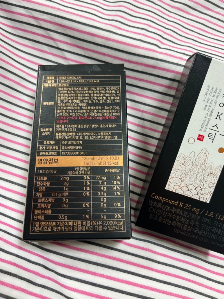그래서 상품 박스에 적힌 컴파운드 K의 함량을 보고 가장 높은 것을 골라주는 것이 좋겠다고 생각했습니다.