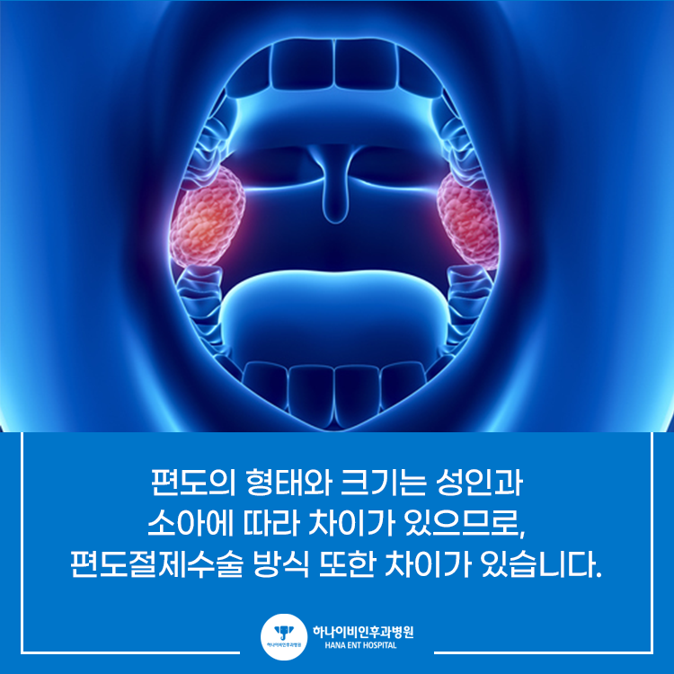 편도선은 성장기에는 성인에 비해 그 크기가 큽니다. 하지만 자라면서 점차 그 크기가 줄어들어 다른 면역기관이 더욱 발달하게 됩니다. 따라서 성인과 소아의 편도 절제 수술은 차이가 있습니다. 성인의 경우 편도피막과 조직을 모두 제거하는 편도절제술을 시행하고, 어린이의 경우 편도조직만 제거하는 편도부분절제술을 시행합니다. 자녀의 만성 편도염은 아무리 만성화되더라도 전문의와의 상담과 정밀검사가 사전에 이루어져야 수술 여부를 결정할 수 있으므로 편도염이 자주 재발할 경우 참고하시기 바랍니다.