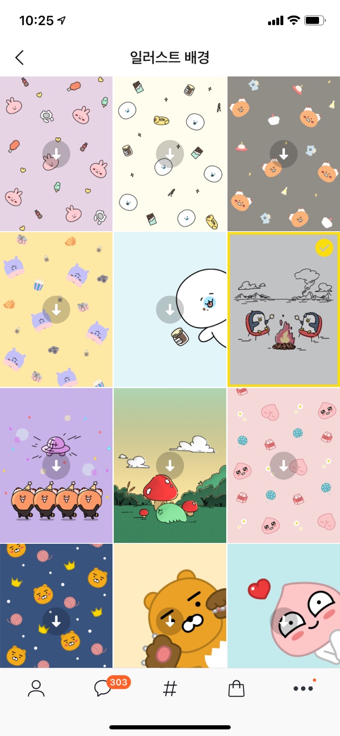 일러스트 배경의 경우도 다양한 카카오가 제공하는 일러스트 이미지 샘플로 설정하는 것이