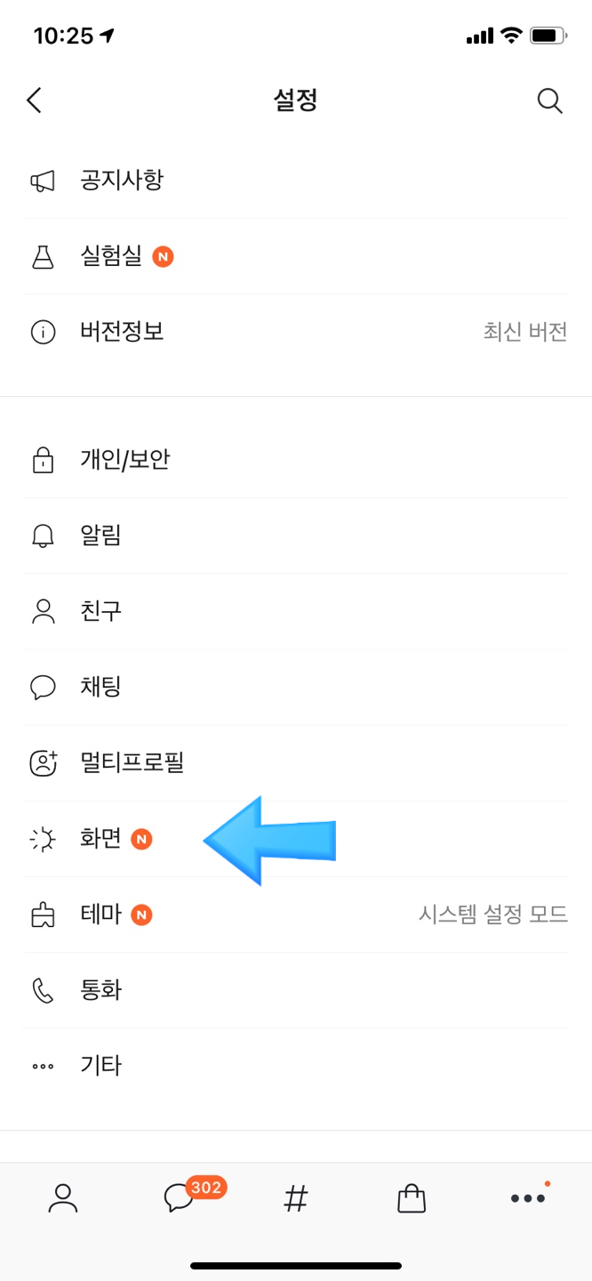 하지만 일괄 적용 언어로 특정 방만 다른 배경으로 설정하고 싶다면 어떻게 하면 좋을까요?그 방법은 간단합니다.특정 채팅방에 들어간 후 세 줄 아이콘을 클릭하십시오.