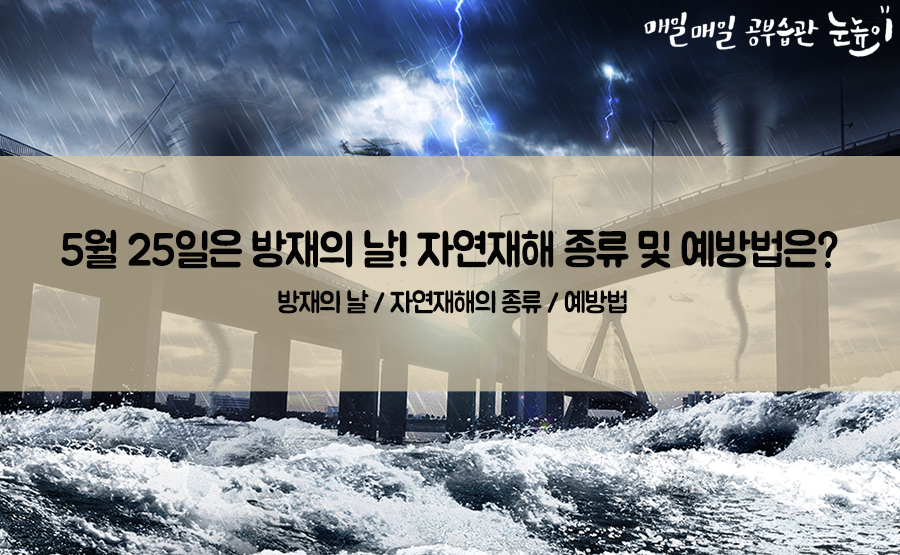 오는 5월 25일은 제26회 ‘방재의 날’입니다만, 방재의 날의 ‘방재’는 재해를 방지한다는 의미가 담겨 있습니다. 오늘은 방재의 날은 어떤 날인지 자세히 알아보고 자연 재해의 종류와 예방 시설에 대해 알아보도록 합시다! ^^